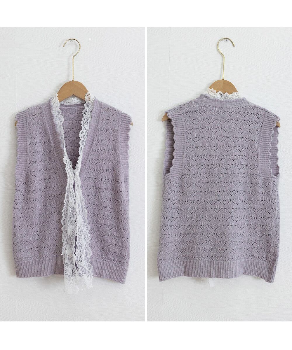 【日本倉庫即納】 ニットベストネックラインレースニットジレ