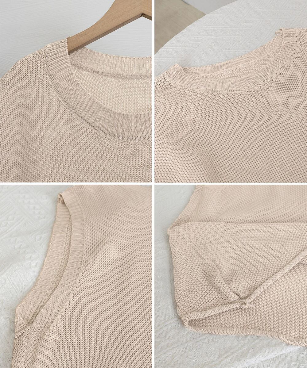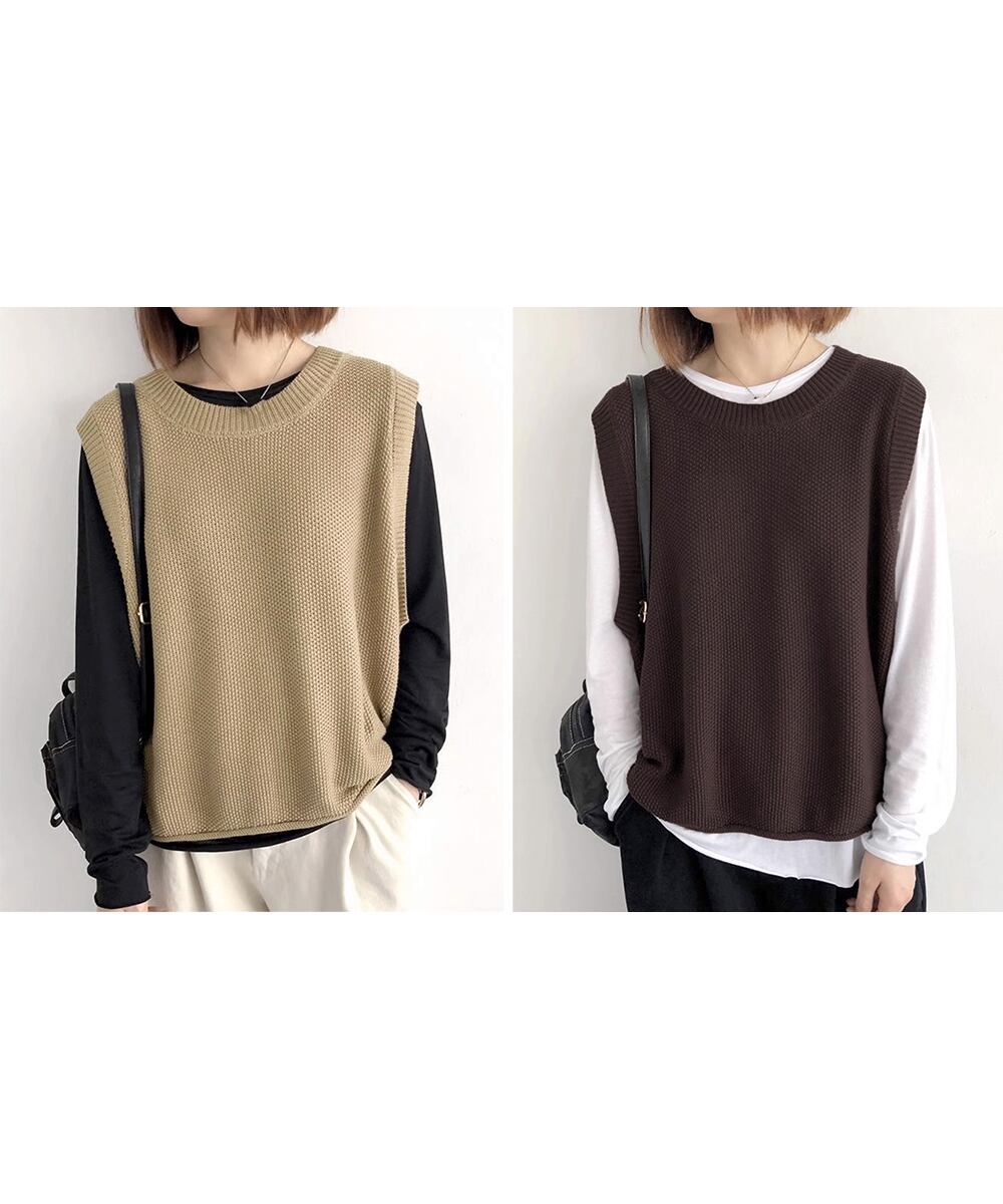 ノースリーブ ニットトップス ラウンドネック ベストセーター 体型カバーニットジレ ゆったり レイヤードベストカジュアル