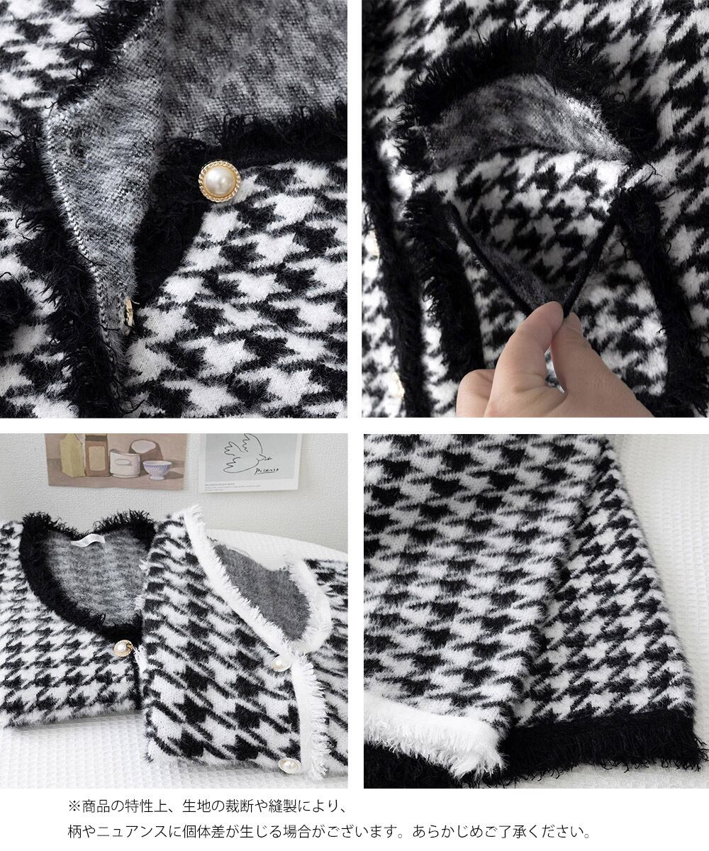 レディース 千鳥格柄 ニットアウター オフィスカジュアル モノトーン 羽織り ノースリーブ ニットカーディガン Vネック