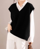 着やせニット韓国風/ニットチョッキ春秋/重ね着ベストお洒落