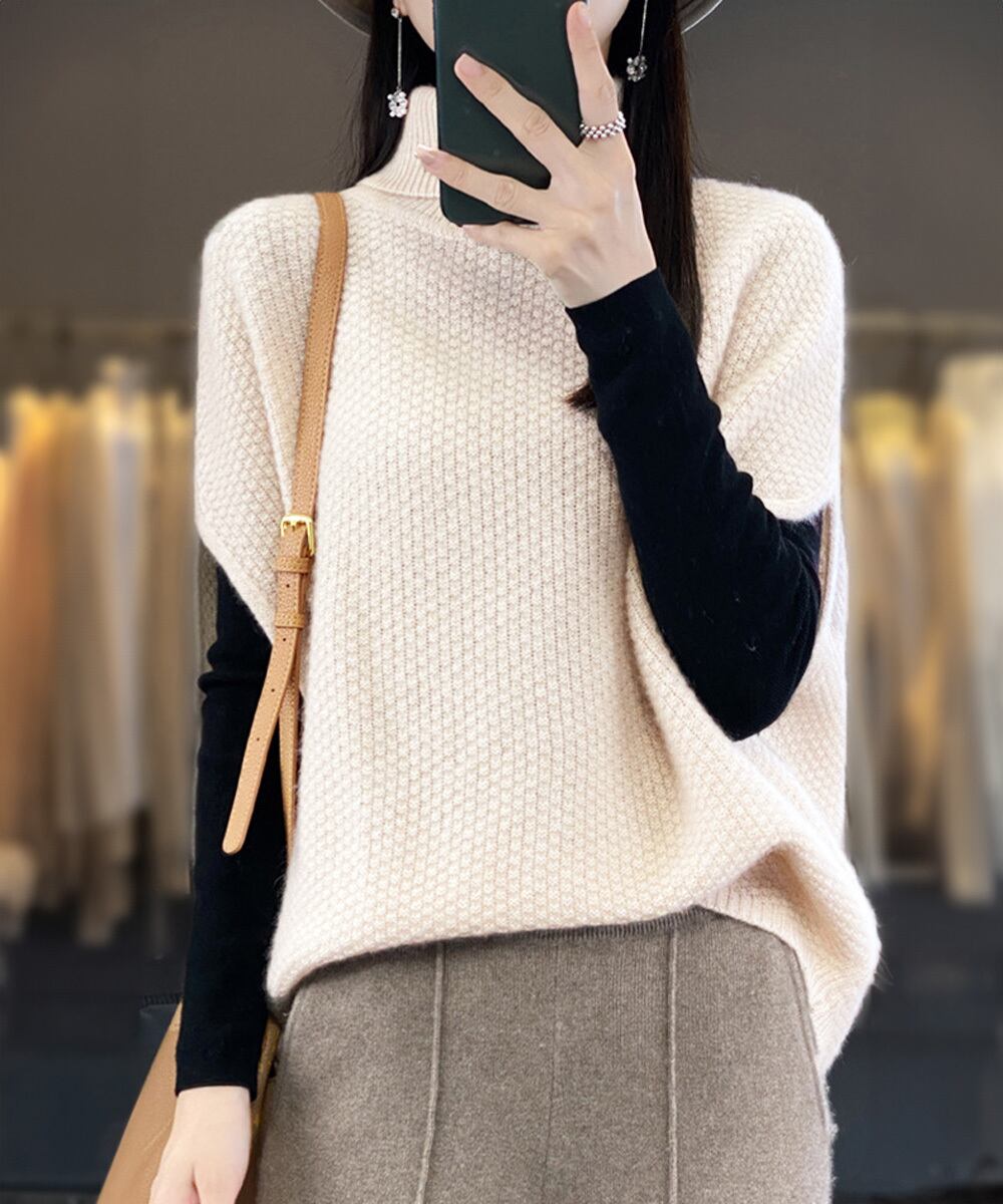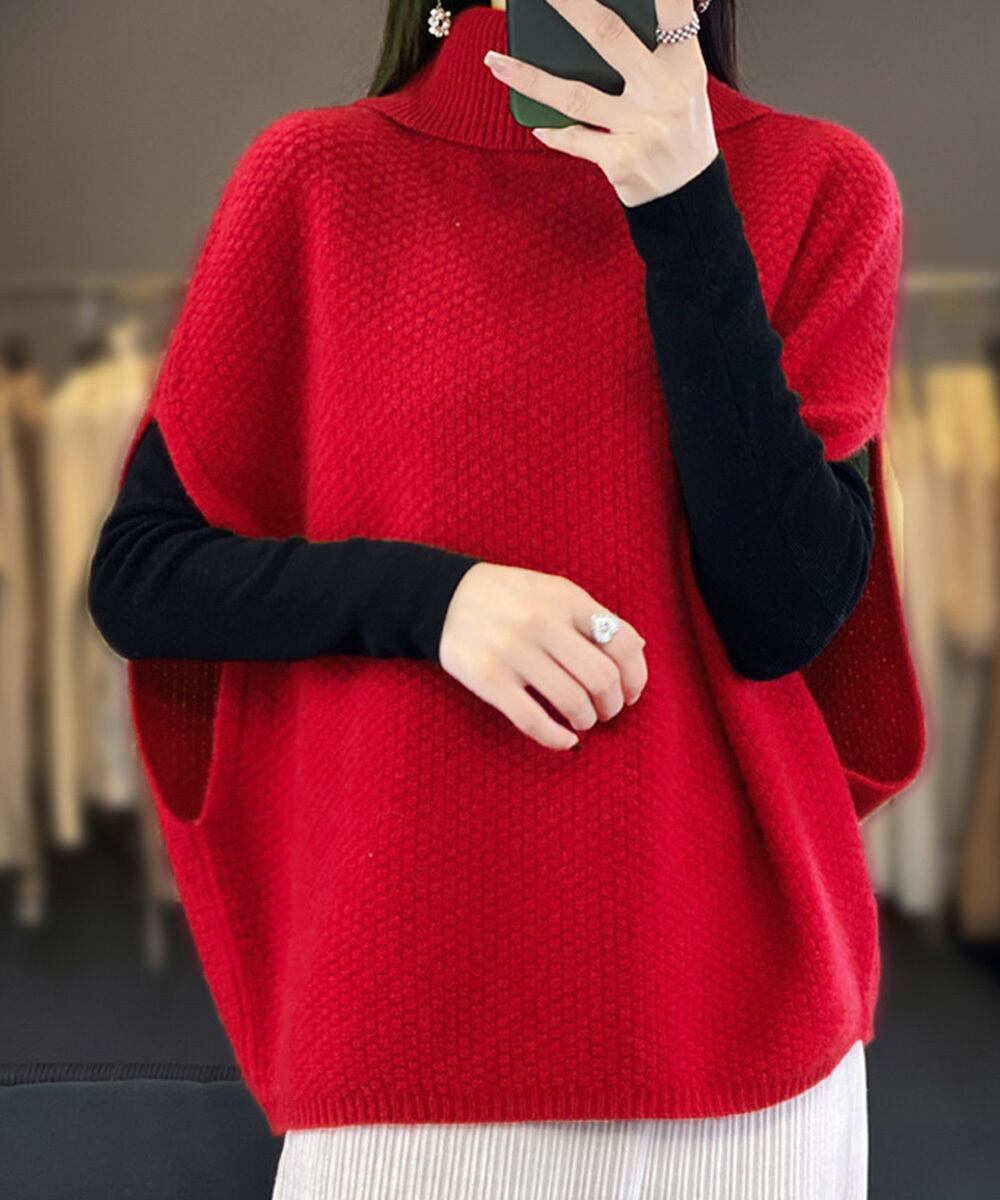 ボリューム感が可愛い、ゆとりのあるタートルネックニットベスト