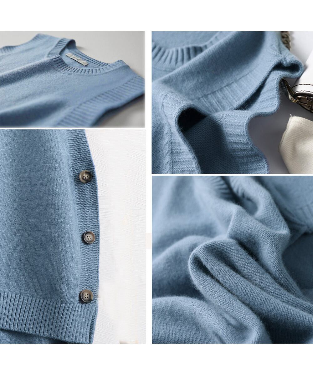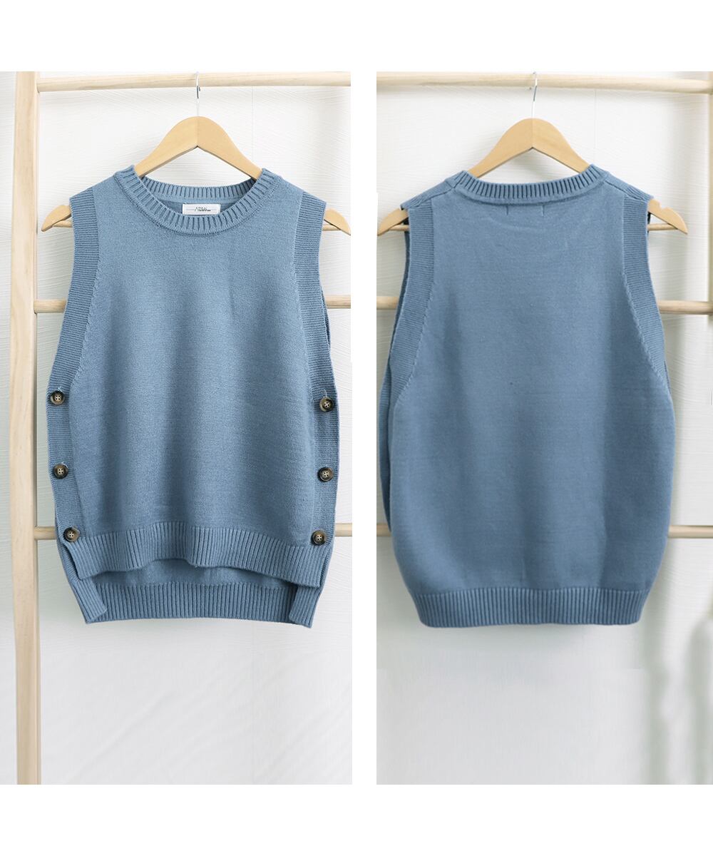 レディース 韓国ノースリーブ ニットトップス サイドボタン ラウンドネック ニットジレ プルオーバー カジュアル ベスト