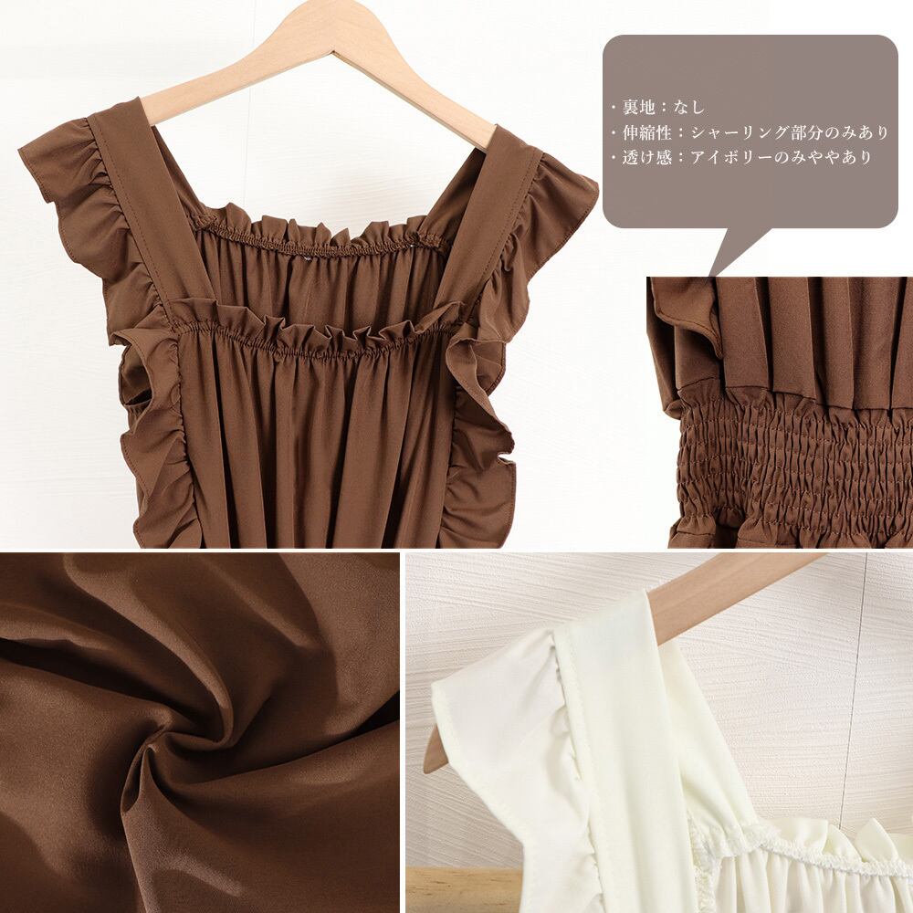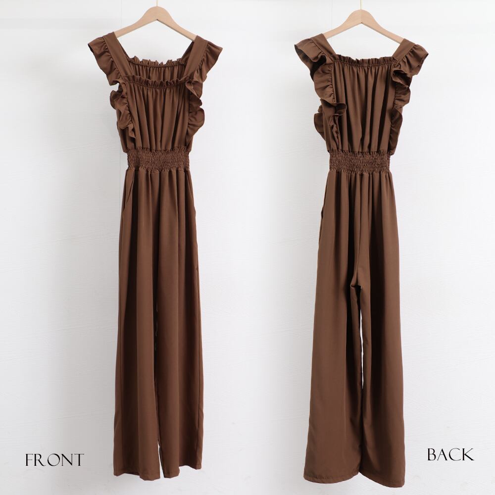 【日本倉庫即納】 フリル袖 オールインワン パンツドレス