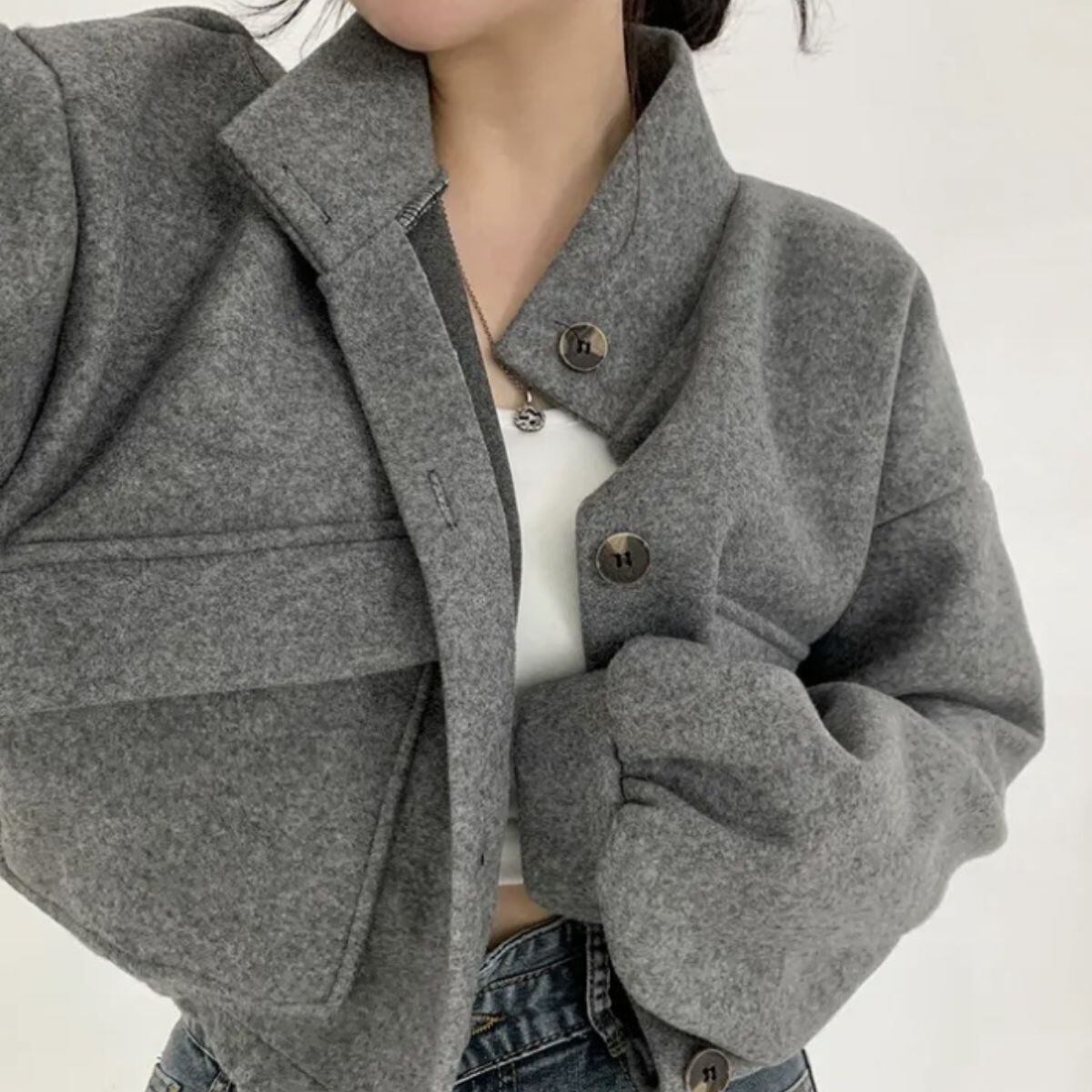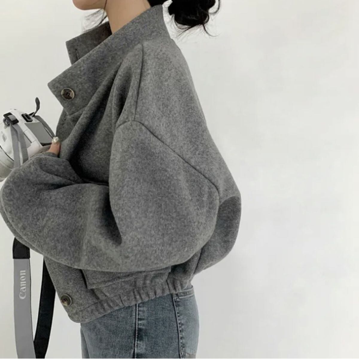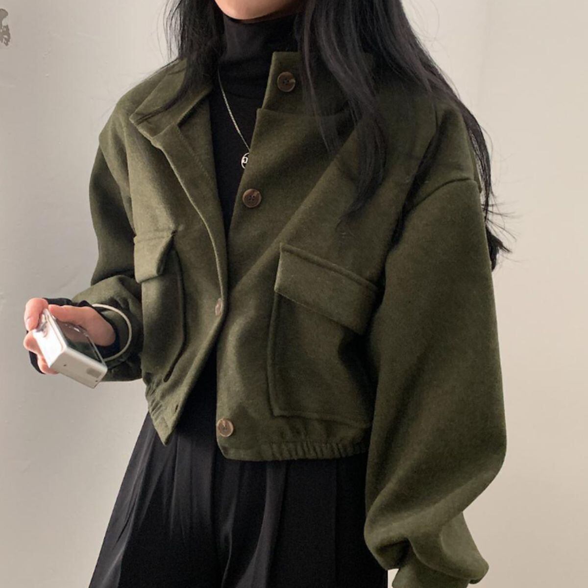 ジャケット アウター ブルゾン ショート丈 ウールタッチ 立ち襟 レディース 韓国ファッション