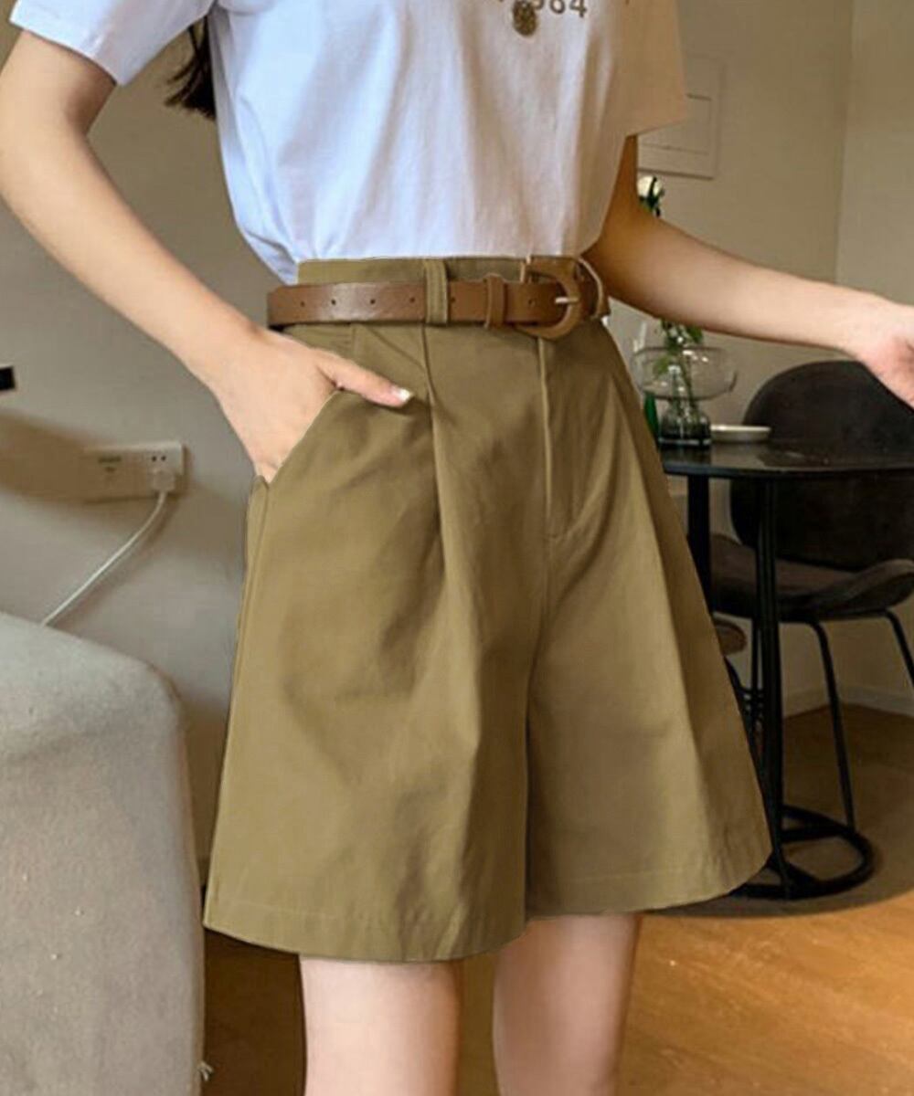 【日本倉庫即納】 ベルト付きショートパンツ タック入り夏服