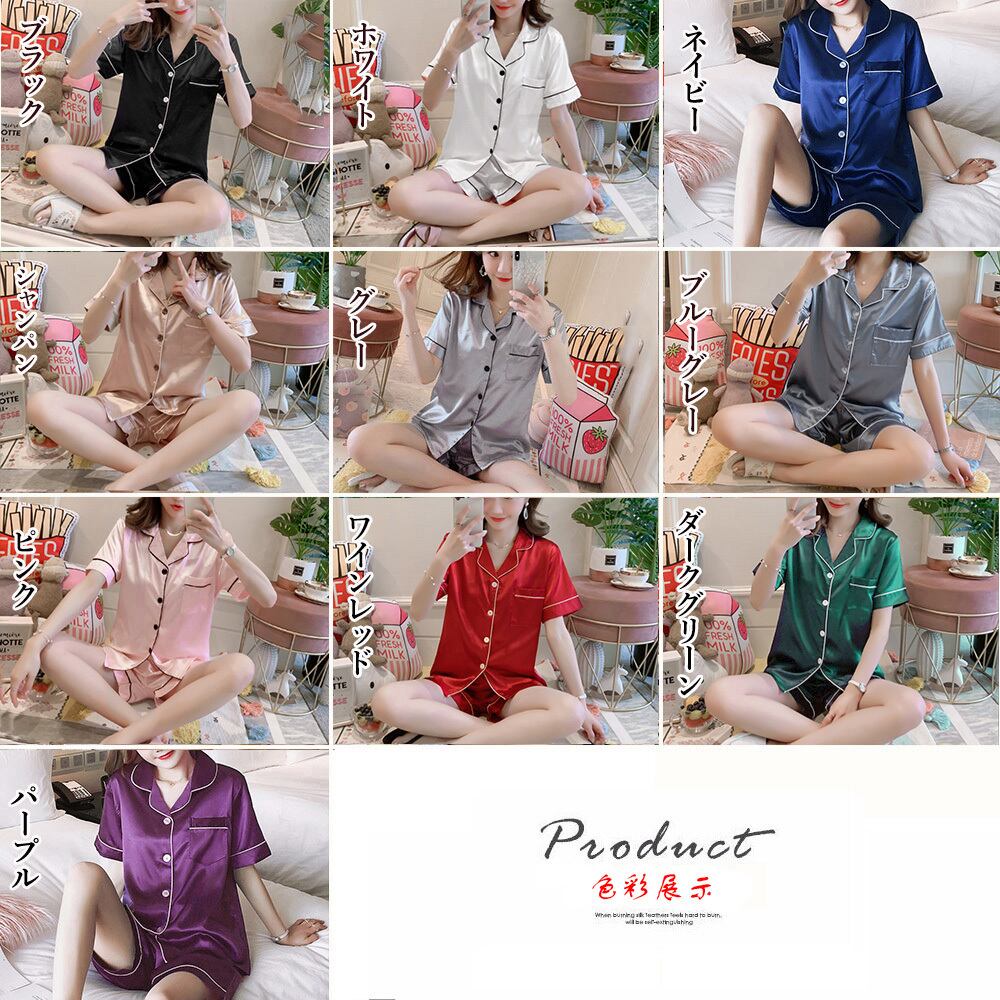 【日本倉庫即納】 パジャマセットアップ シルク風 部屋着