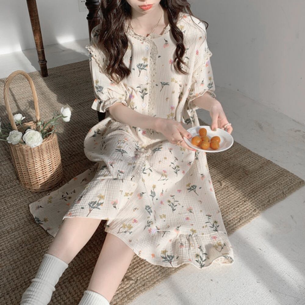 淡い色合いとボタニカル柄で爽やかな雰囲気を醸し出し、汗ばむ季節でも上質な睡眠作りに役立つフェミニンルームウェア