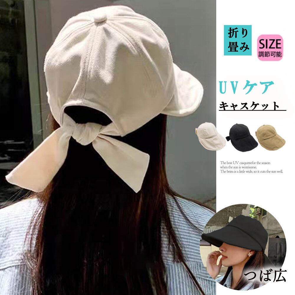 サンハット おしゃれ バックリボン キャップ つば広 韓国風 折り畳み ビーチキャップ 小顔 カジュアル 日焼け対策帽子