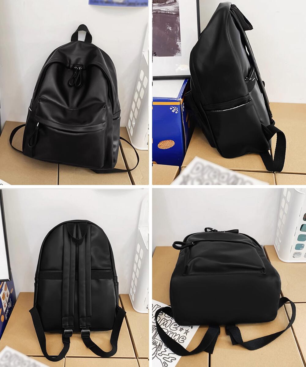 黒リュック軽量韓国/ソフトレザーカバン/カジュアル鞄 無地
