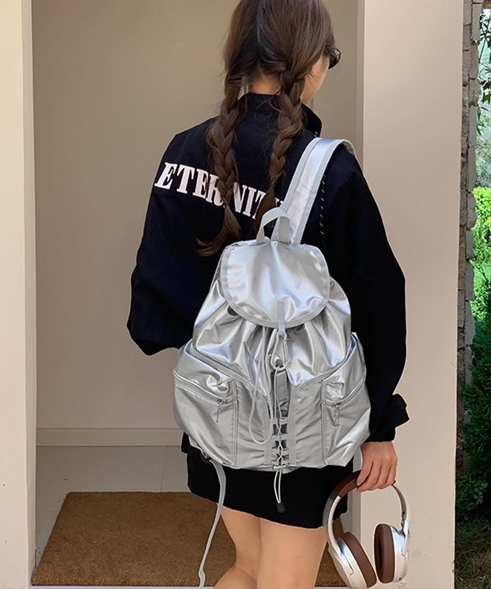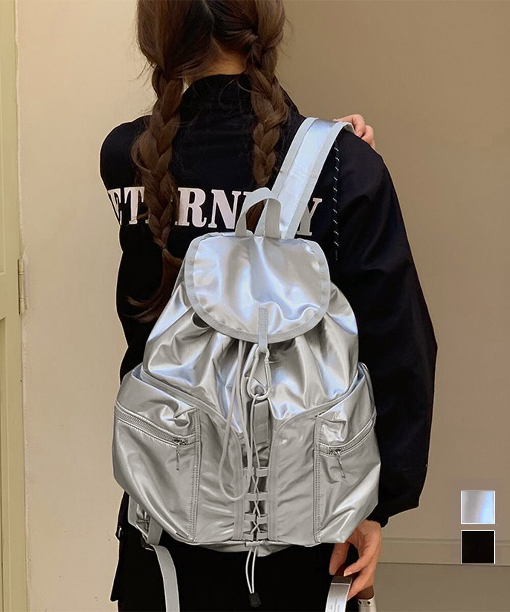 コーデのスパイスに最適な、艶やかなメタリックカラーがアクセントになったリュックサック