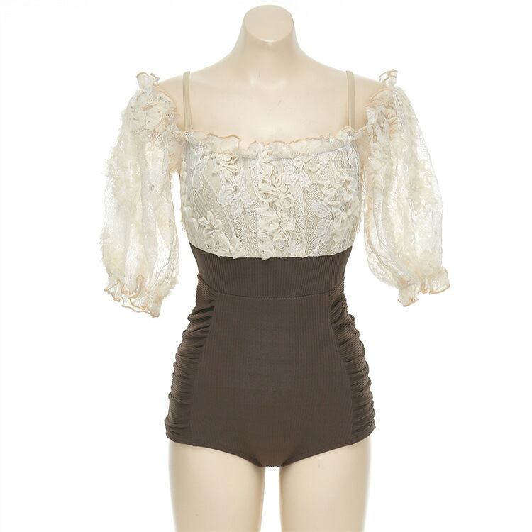 レース ビキニ ワンピース水着 体型カバー レディース ミセス ママ水着 20代 30代 40代 オールインワン