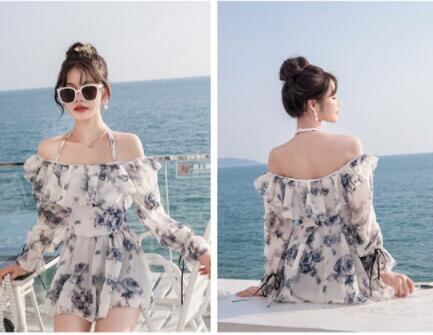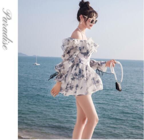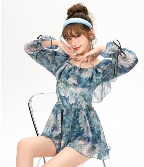 夏 レディース 長袖温泉可用 女子ビキニ 水泳用具 連体 長袖ワンピース 水着