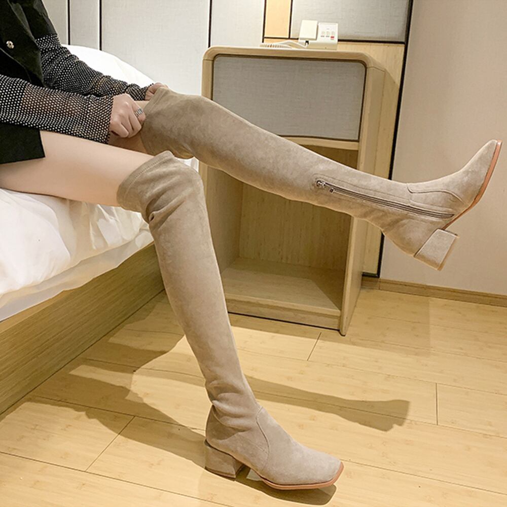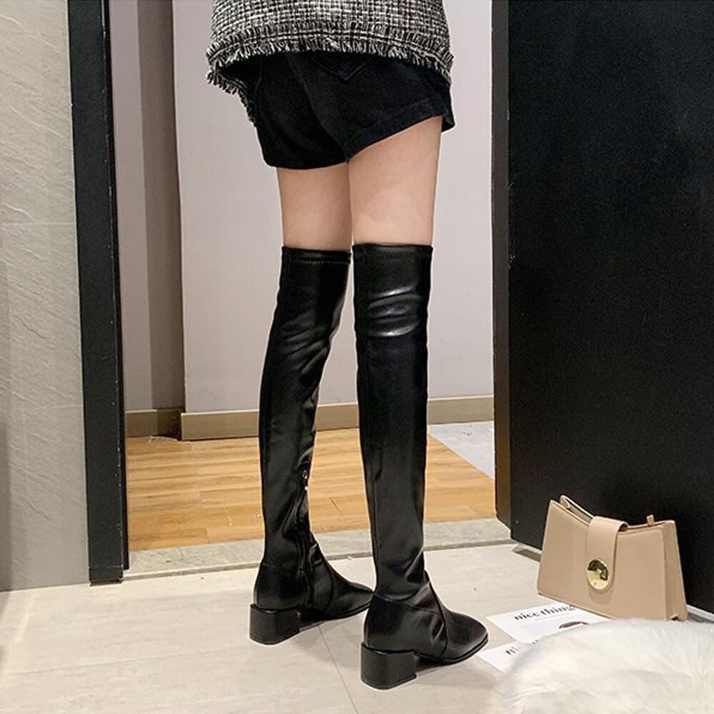 【日本倉庫即納】 ニーハイブーツ スクエアトゥ 美脚ブーツ