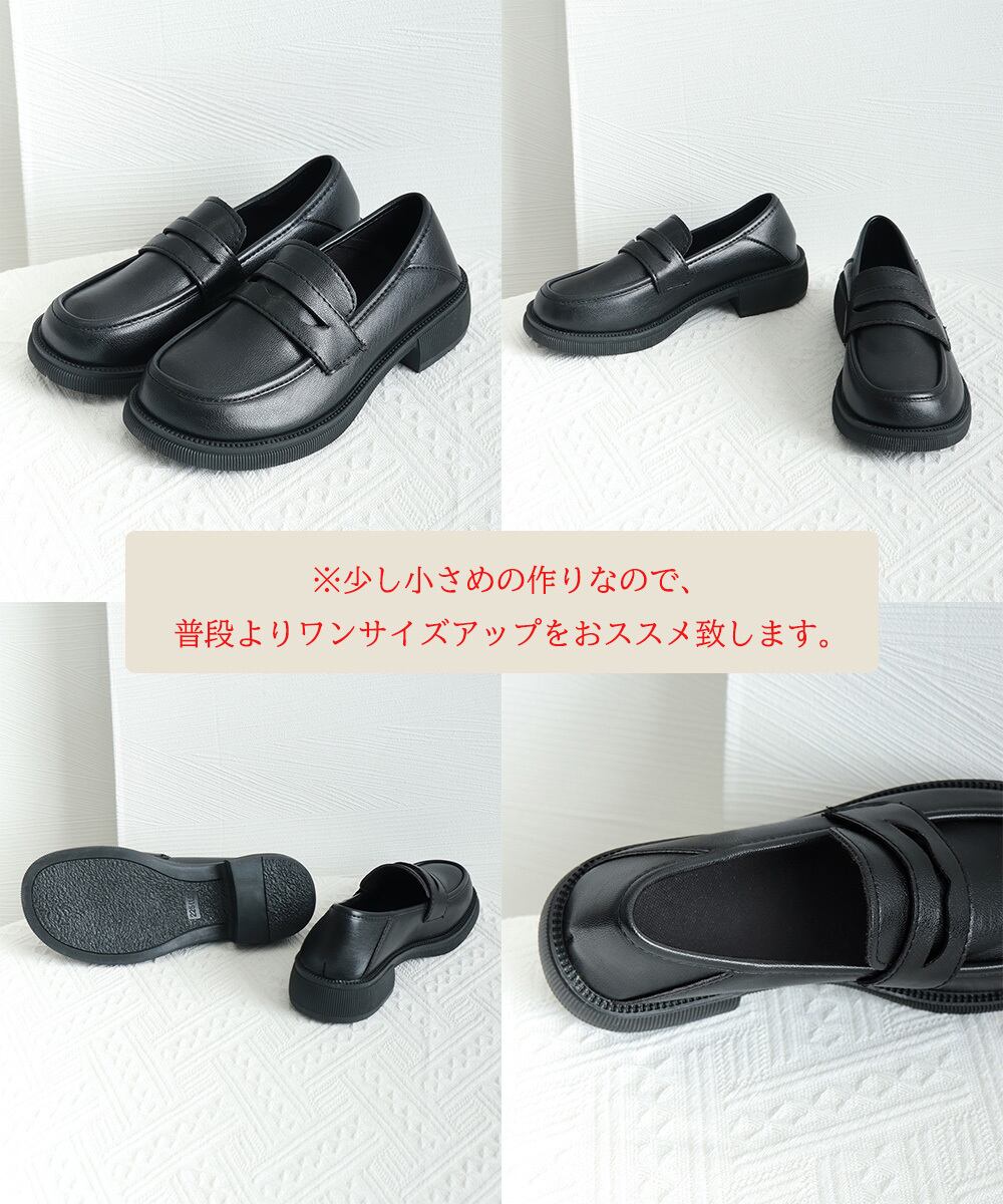 ローファーパンプス 学院風シューズ 太ヒールシューズ