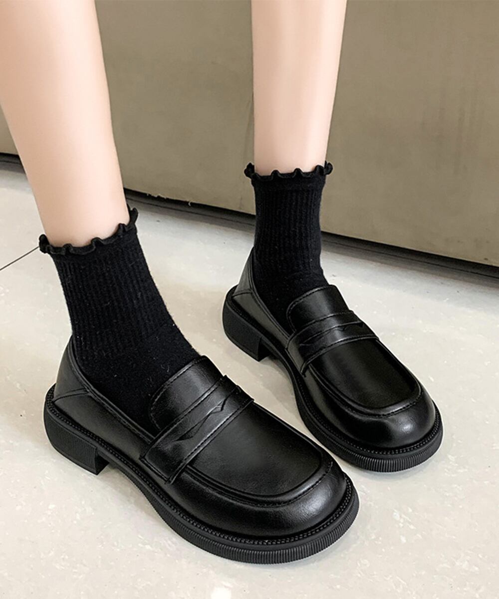 ローファーパンプス/学院風シューズ/太ヒールシューズ