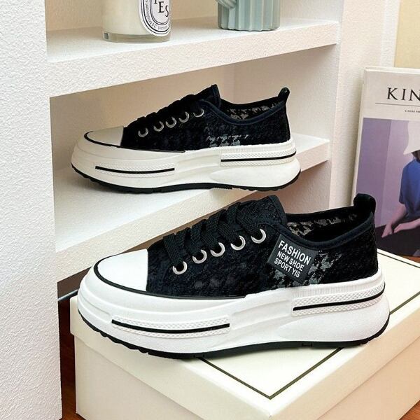 シースルースニーカー ボリューム 厚底 千鳥柄 レース 美脚スニーカー 4.5CM