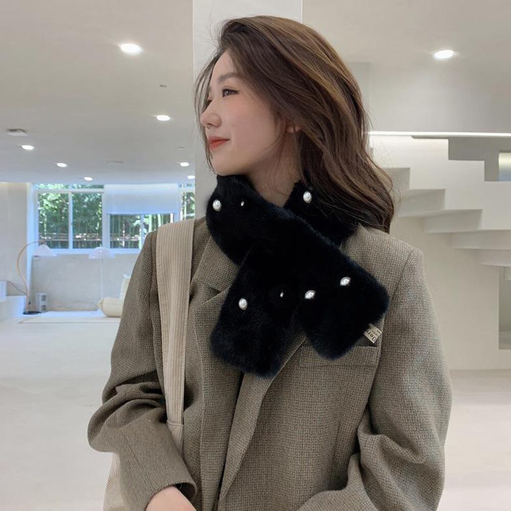 レディース 韓国 パール付ティペット シンプル フェミニン 巻き物 通勤通学 オフィス おやれ あったか 可愛い 上品