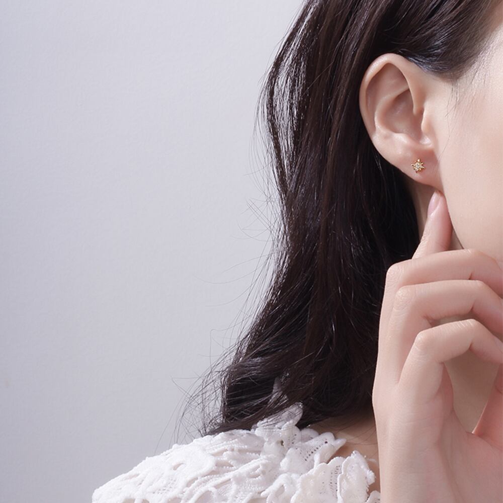 小さくてシンプルなデザインなので、全部つけてもゴツくならずに、キラキラと可愛い耳元になる