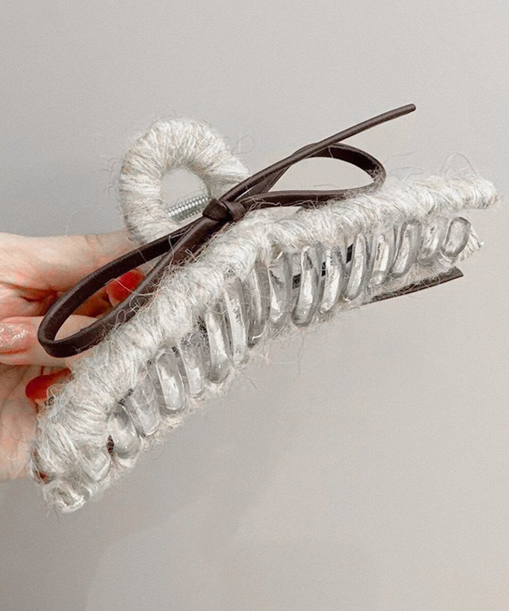 大きめのクリップで存在感がありながらも、落ち着いたカラーリングと素材で、大人可愛い雰囲気を演出。