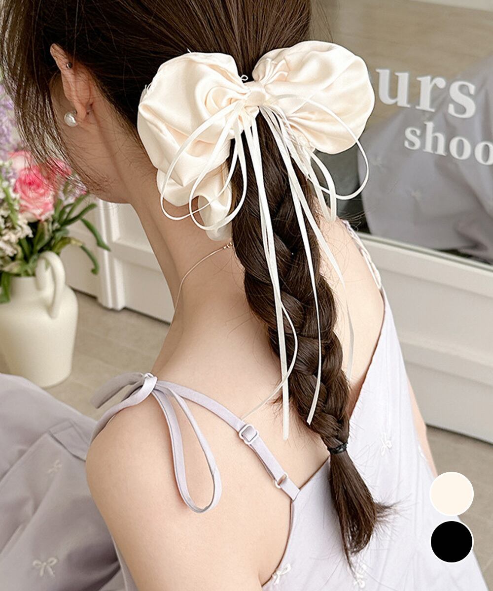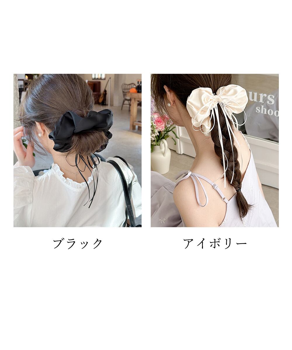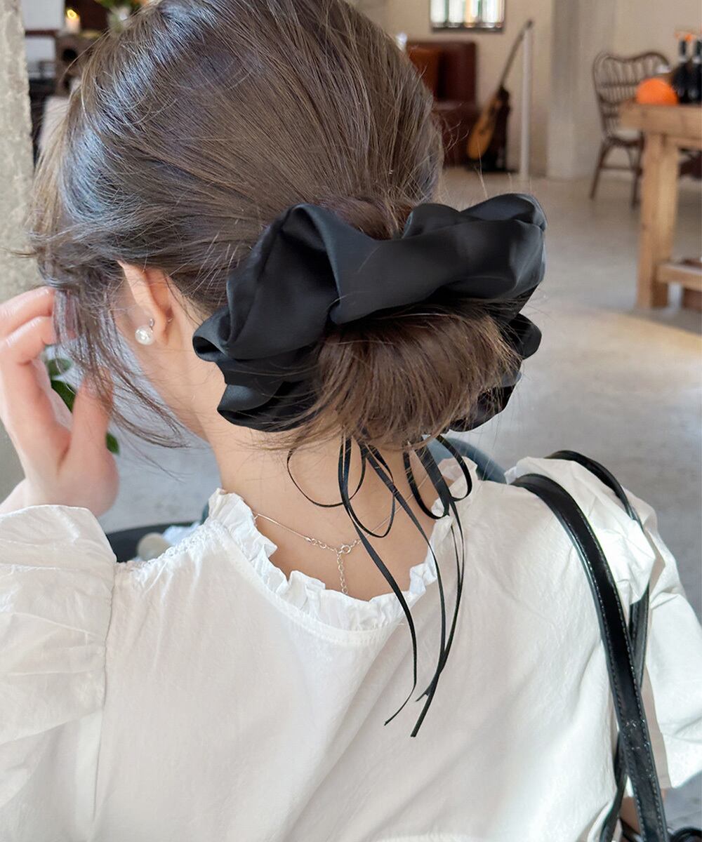 サテン素材のリボンシュシュ。