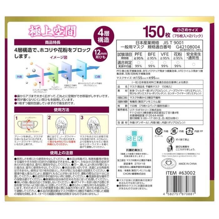極上空間 プレミアム マスク 小さめサイズ 150 枚