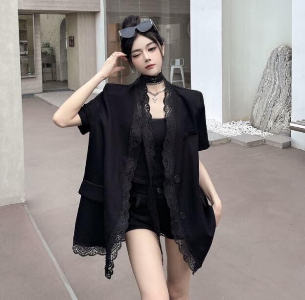 アウター スーツ レース 切り替え ブルゾン レディーストップス