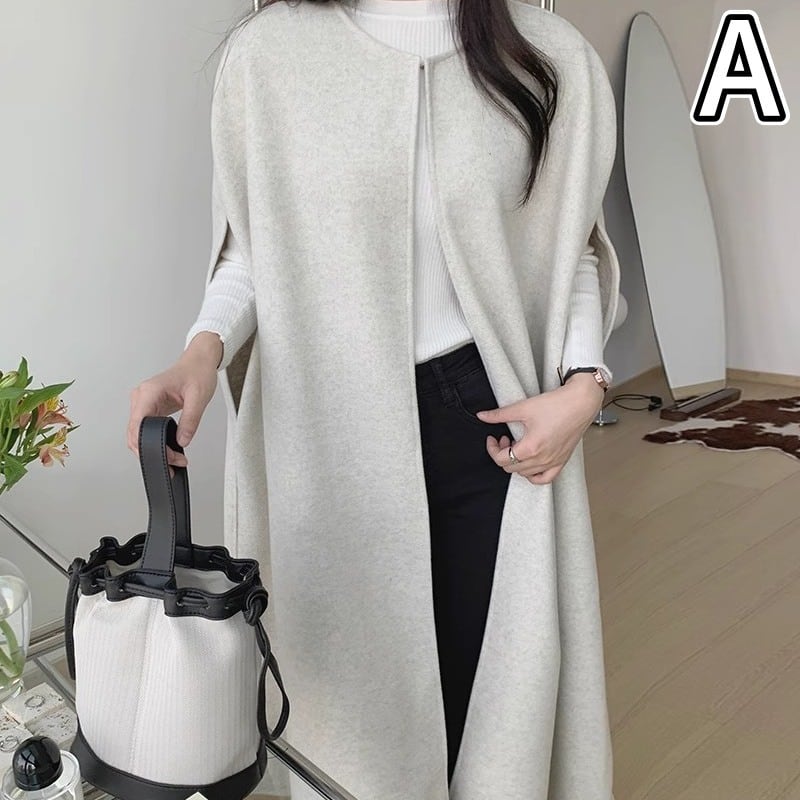 トップス アウター マント ケープ ポンチョ クルーネック ラウンドネック レディース