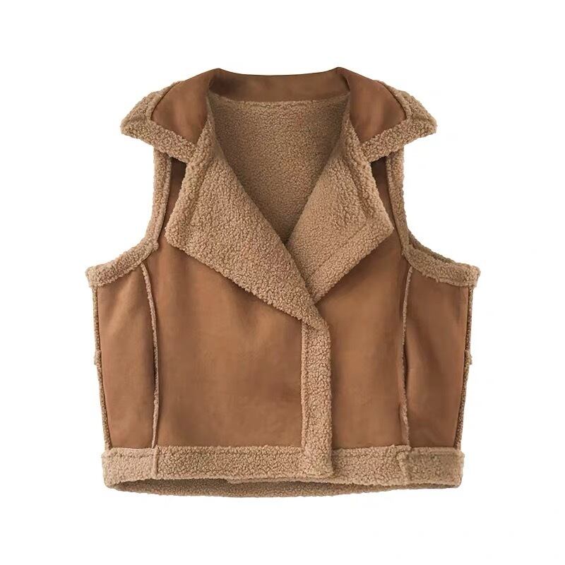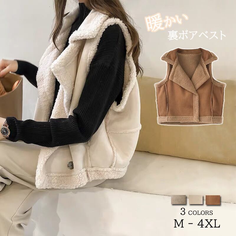 ベスト アウター ノースリーブ ショート ベスト スエード調 防寒 襟 秋 冬 防寒着 裏ボア