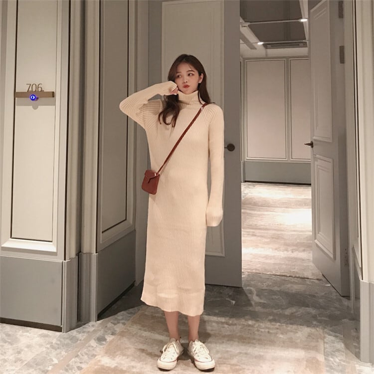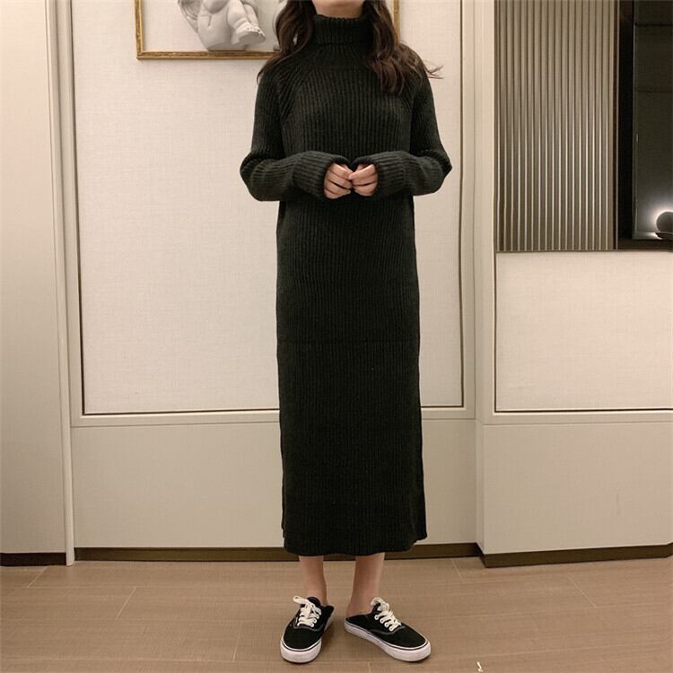 冬服 ニット ゆったりする 中・長セクション タートルネック 厚手 ニットワンピース