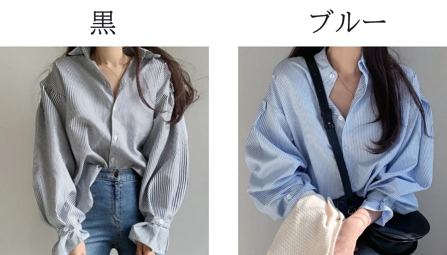 ストライプシャツ ブラウス トップス カジュアル 襟付き 長袖 きれいめ