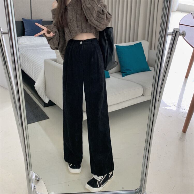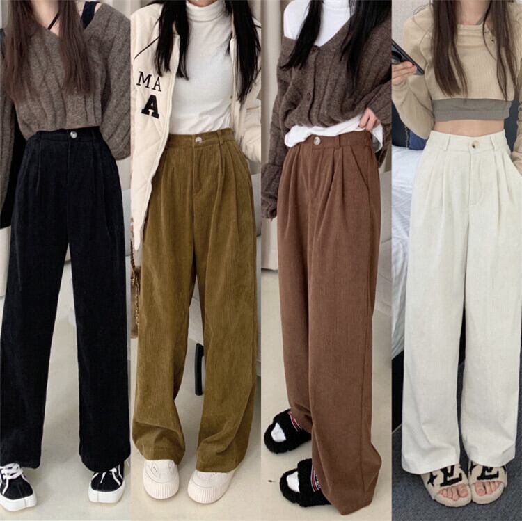 韓国ファッション コーデュロイ レトロ スリム オシャレ カジュアルパンツ 伸縮性のあるウエスト