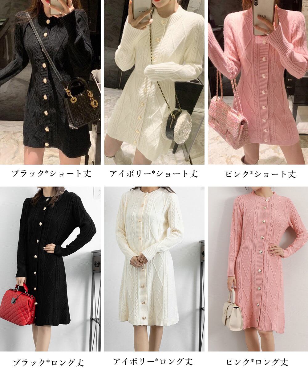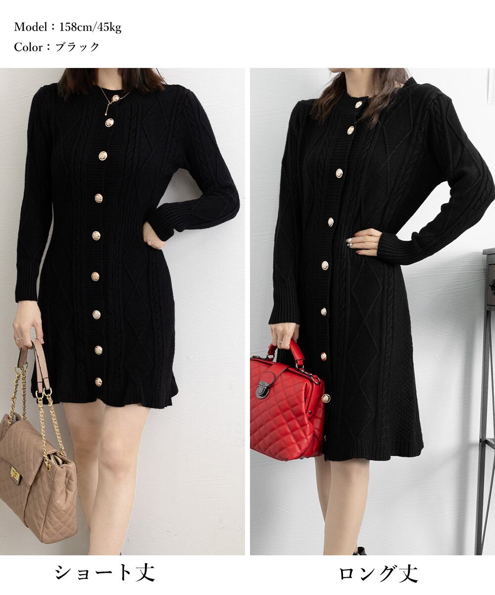 【日本倉庫即納】 ケーブルニットワンピース ミニ きれいめ