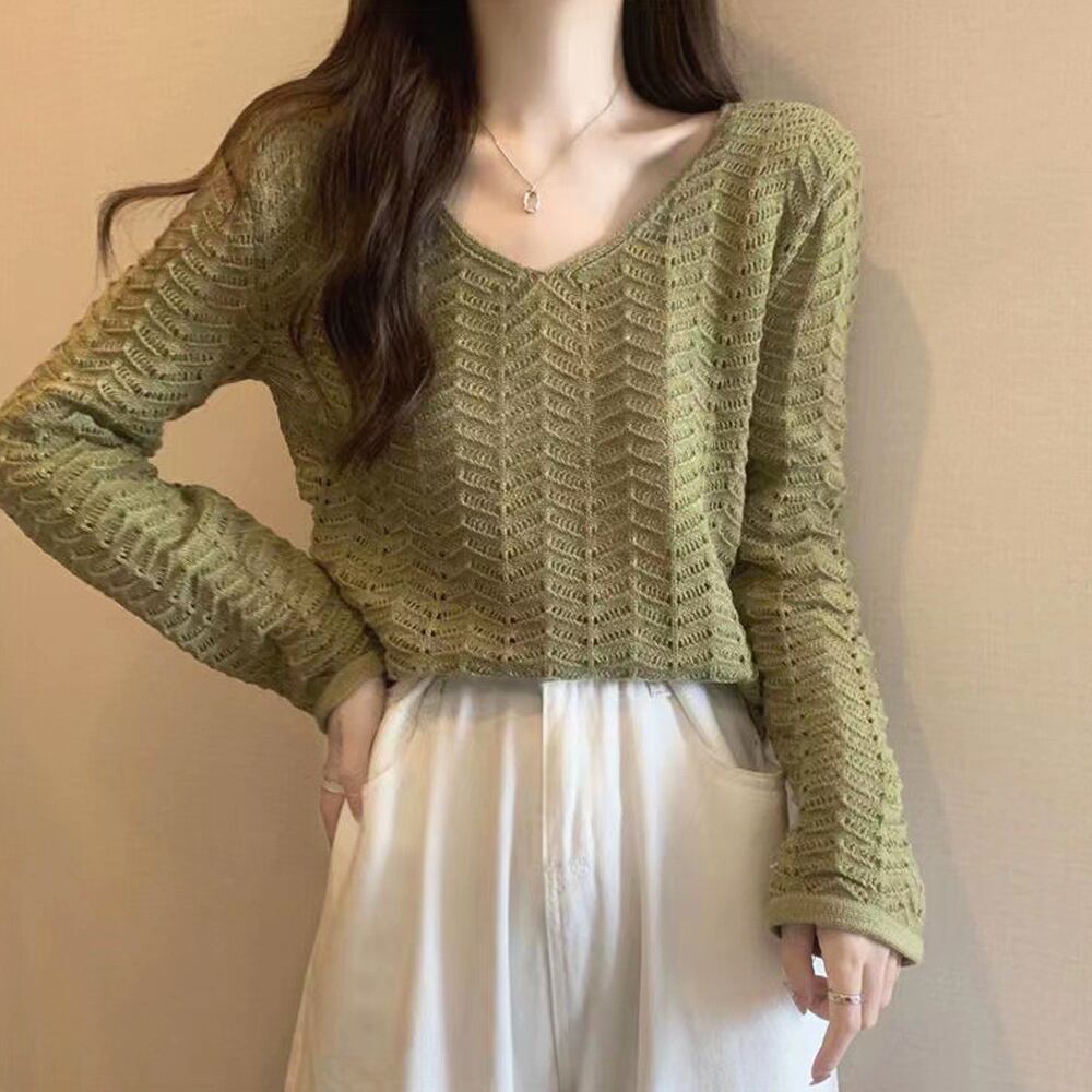 Vネックトップス/ニットセーター/ニットソー お洒落