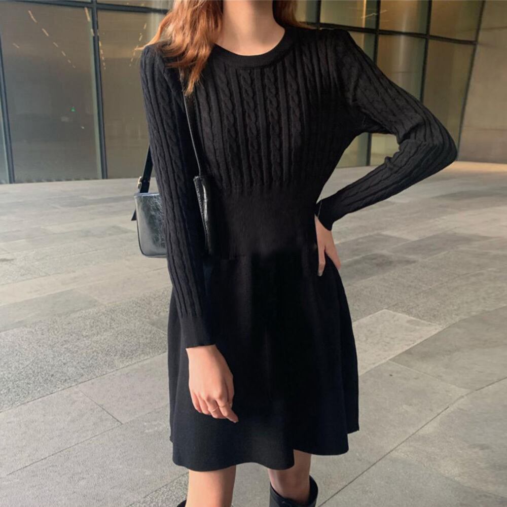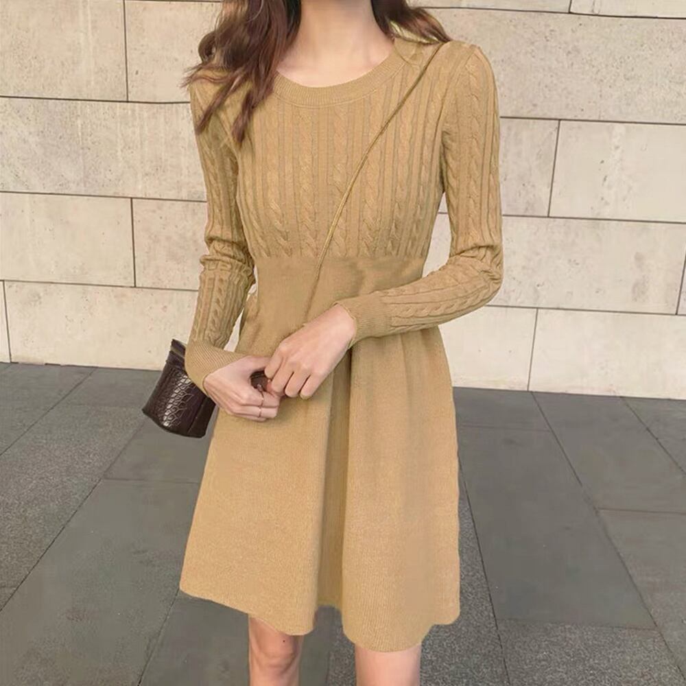 【日本倉庫即納】 ケーブル編みニットミニワンピース 韓国風