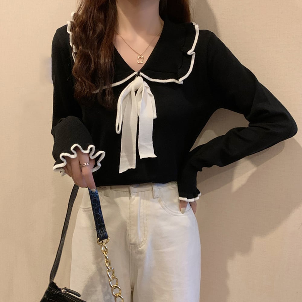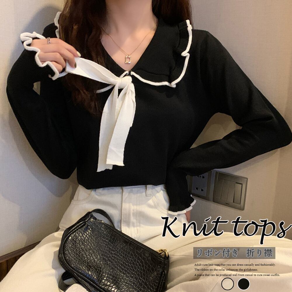 【日本倉庫即納】 ニットトップス レディース リボン付き