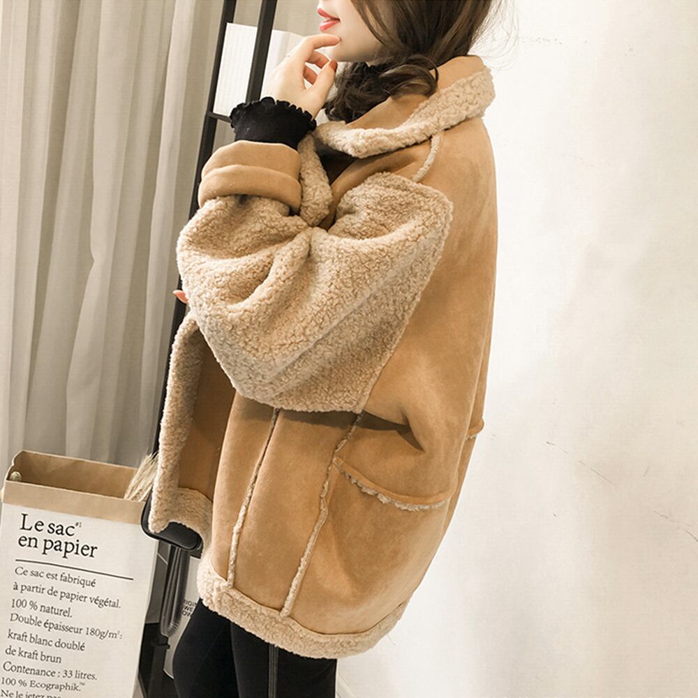 【日本倉庫即納】 切替ムートンジャケット 韓国風 冬物