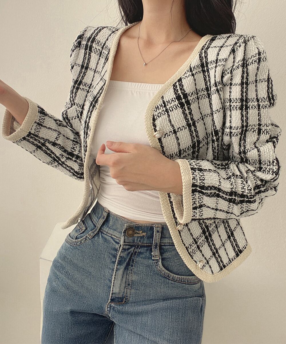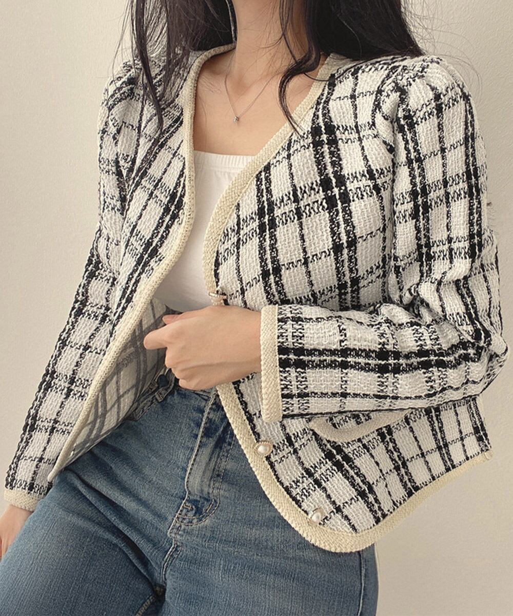 【日本倉庫即納】 韓国風ツイードジャケット ライトアウター
