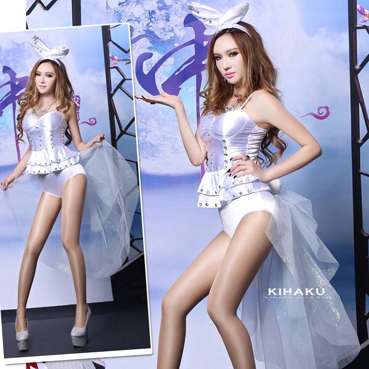 【即日出荷】白 ロング丈チュール バニーガール服 ミニスカ コスプレ衣装 ハロウィン【4107】