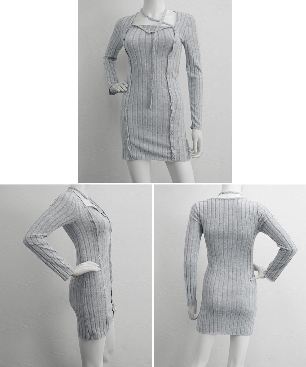 【日本倉庫即納】 タイトミニニットワンピースホルターネック