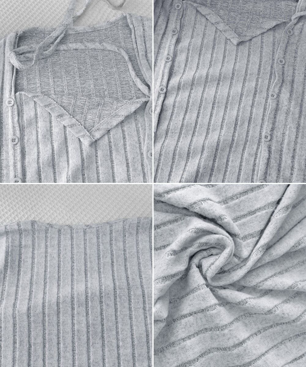 伸縮性のあるニット素材で、程よく体にフィットし、ボディラインを美しく魅せるホルターネックワンピース。