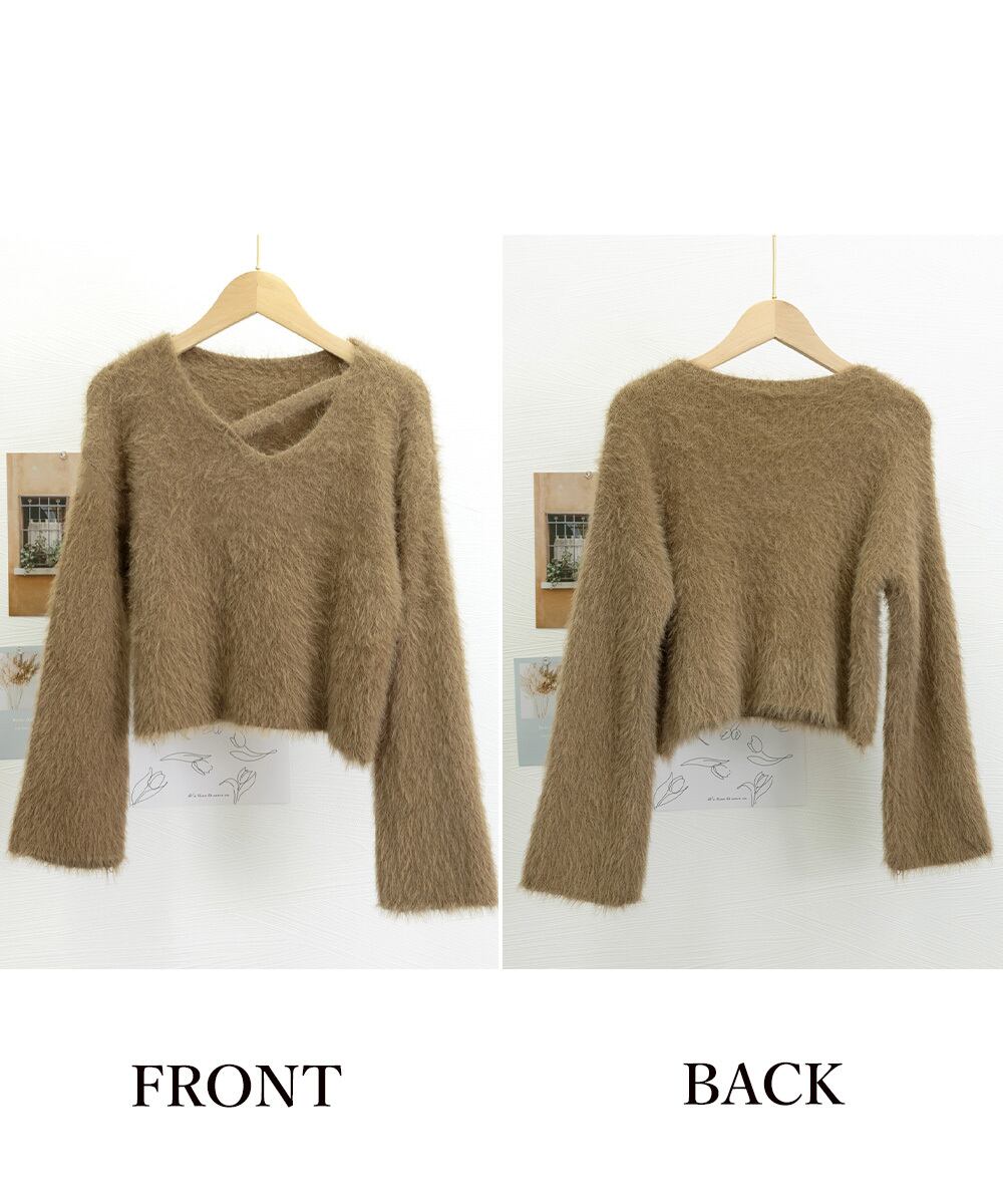 【日本倉庫即納】 クロップド丈シャギーニット Vネック長袖
