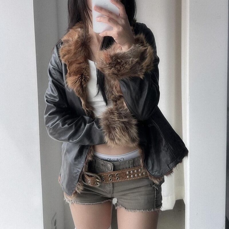 トップス アウター ジャケット PU フェイクレザー 起毛 フェイクファー レディース