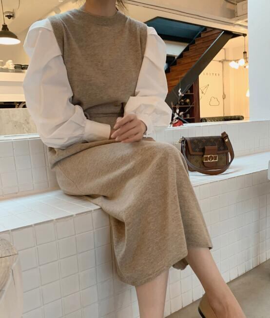 レディース トップス ワンピース ドレス ロング丈 レイヤード