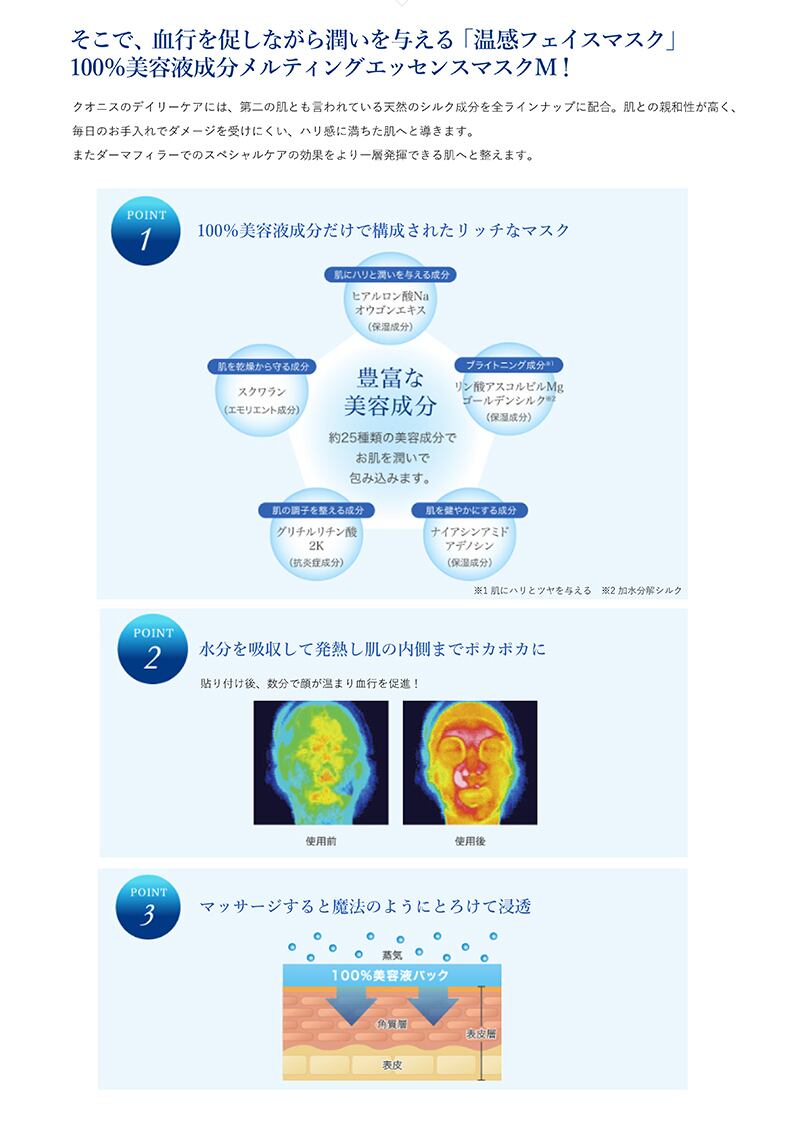 さらに、水分を与えてマッサージすることで、マスクが溶けだし、まるで角質層まで肌全体が潤いのヴェールで包み込みまれる様。