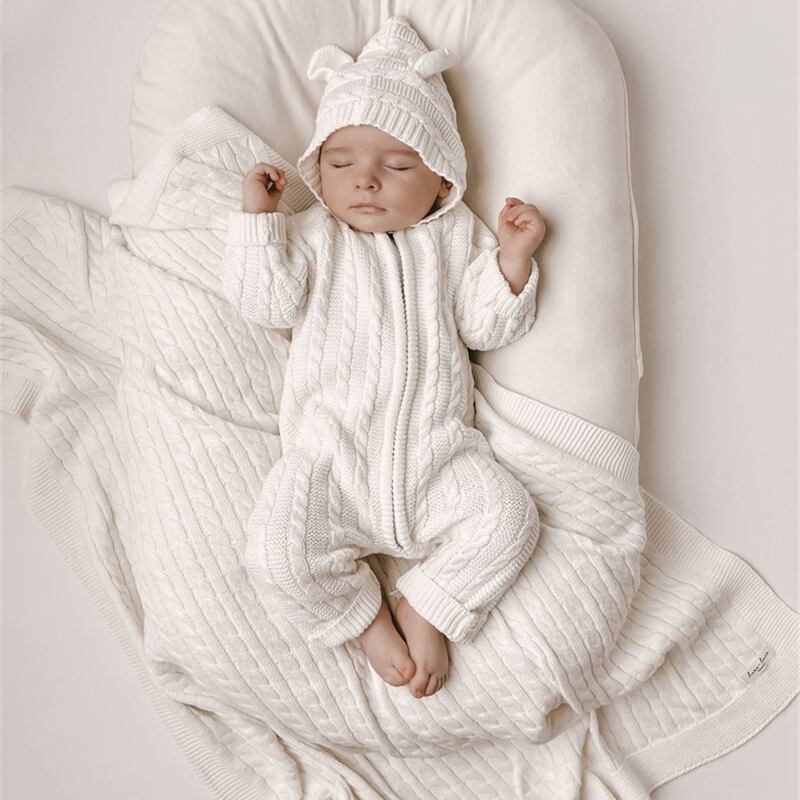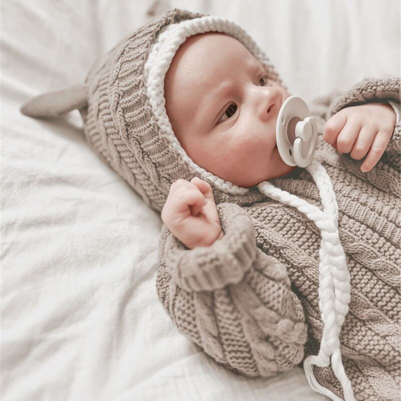 秋新作 ベビー服 アラン模様 ニット オールインワン 可愛い ロンパース 新生児 クマ耳 子供服