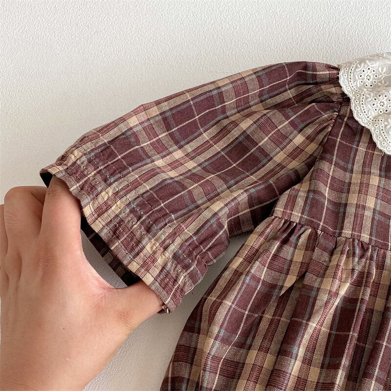 レースカラー 女児 格子 柔らか 長袖 カバーオール キッズ服 パフスリーブ 普段着 新生児 春 秋