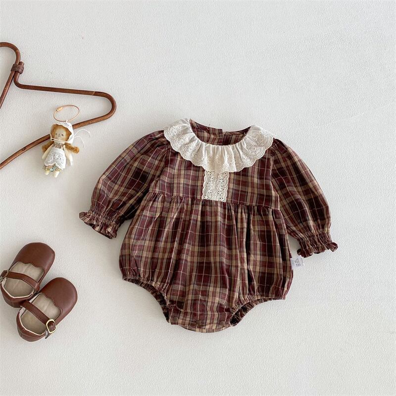 2025秋新作 ベビー服 女の子 レースドッキング チェック柄 ロンパース 可愛い おしゃれ 子供服