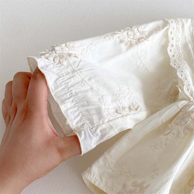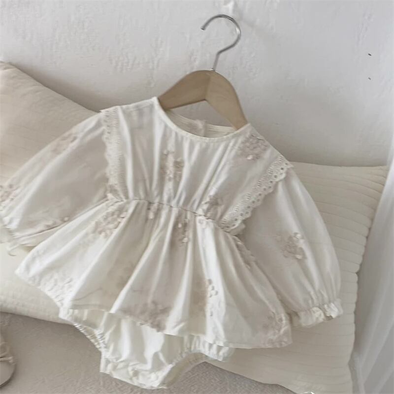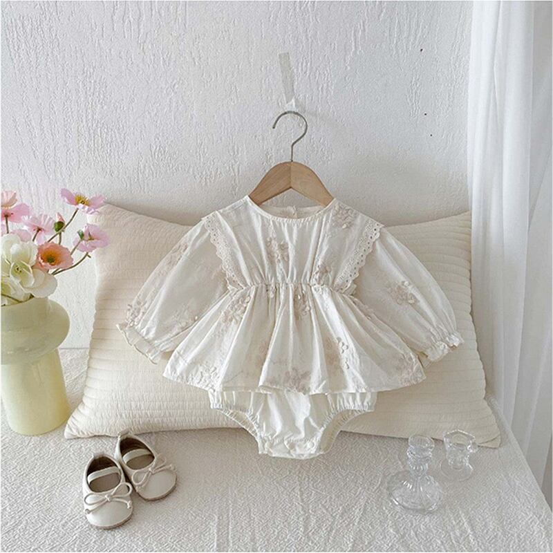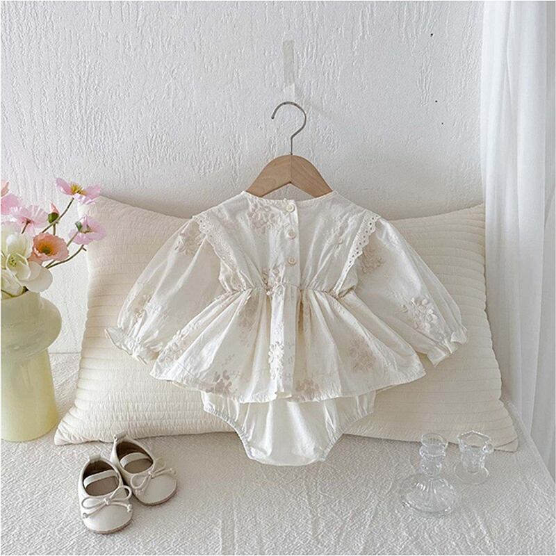 秋新作 ベビー服 女の子 フェイクレイヤード 刺繍 長袖 ロンパース 子供服 可愛い 柔らか