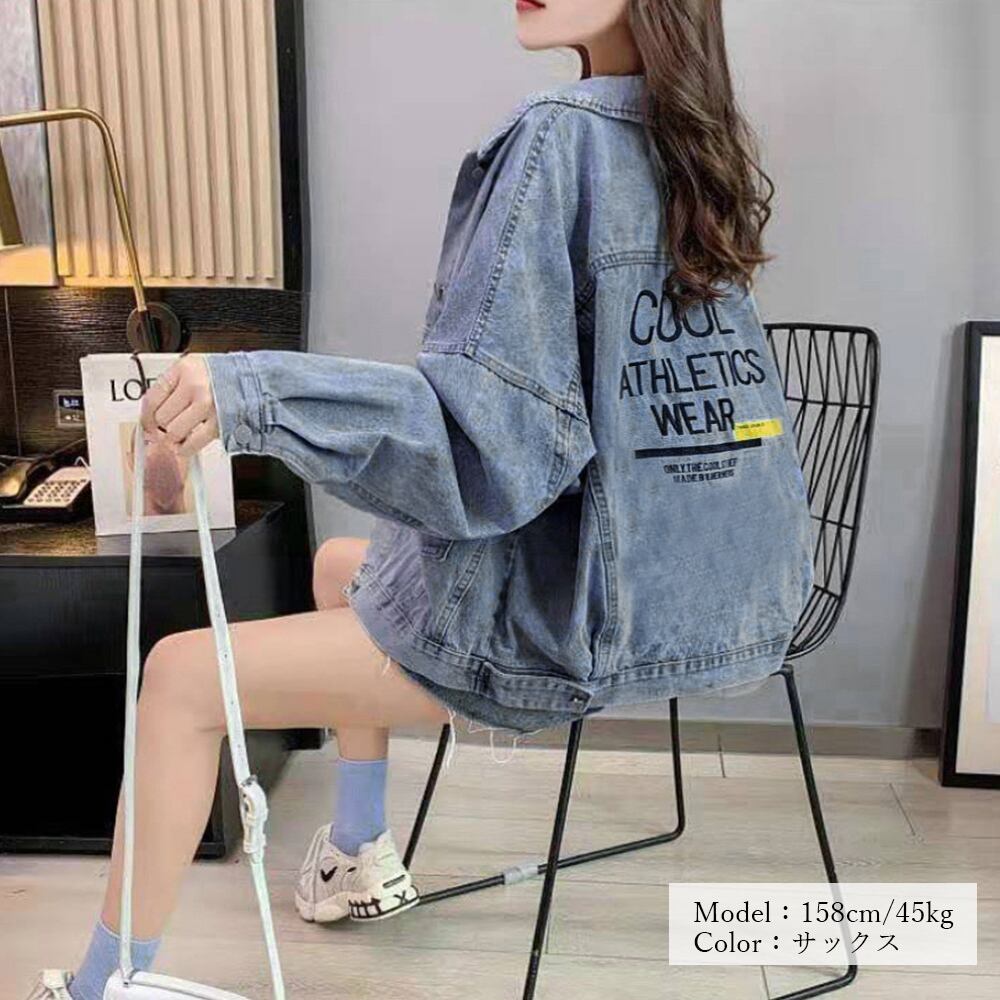 デニムコート 体型カバー 春秋冬アウター 韓国英字プリント ゆったりGジャン オシャレ カジュアルトップス 20代30代