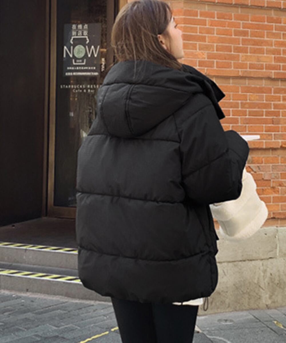中綿ジャケット レディース暖かいアウター カジュアル フードブルゾン ジャンバー 韓国風 ボリューム感 エコダウン 冬服
